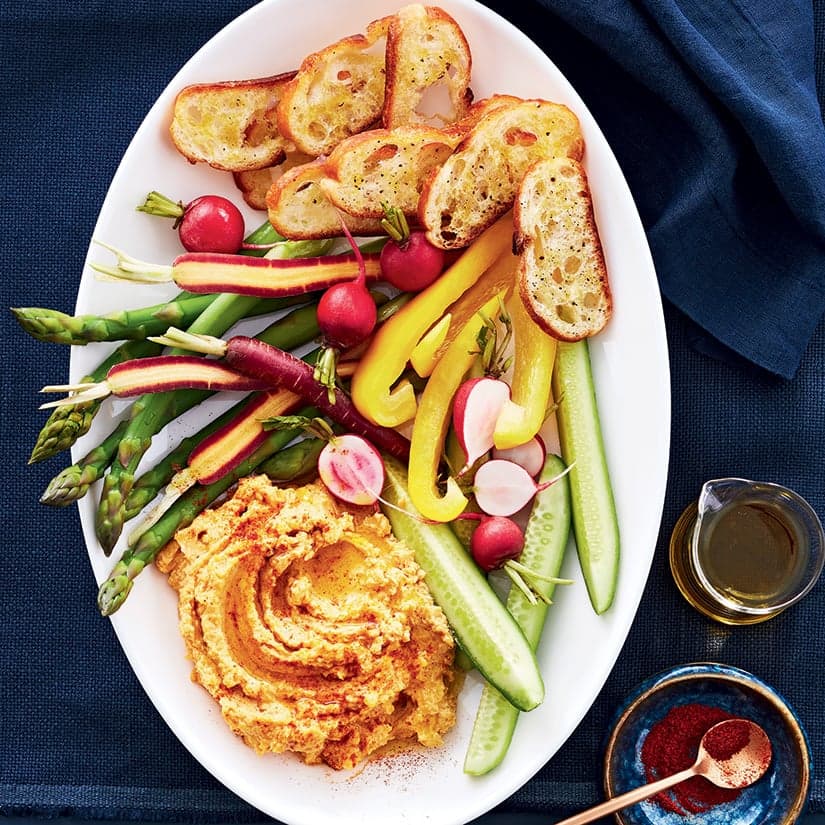 Ces recettes aux saveurs méditerranéennes nous transportent à l'autre bout du monde. Au menu de ce repas 3 services: hummus aux patates douces rôties, bols de quinoa aux betteraves et à l’halloumi, et nuages de labneh aux fraises.
